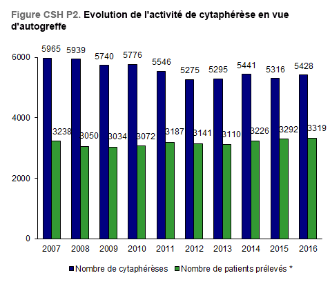 Figure CSH P2. Evolution de l'activité de cytaphérèse en vue d'autogreffe (voir aussi Tableau CSH P1)
