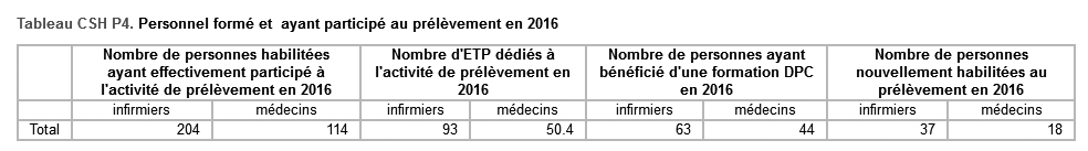 42 centres de prélèvement de CSHP ont eu une activité de prélèvement autologue en 2016 (Tableau CSH P1).