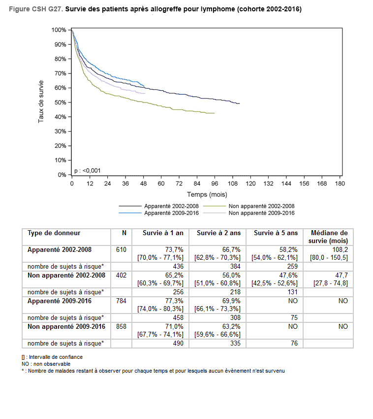 Figure CSH G27. Survie des patients après allogreffe pour lymphome (cohorte 2002-2016)