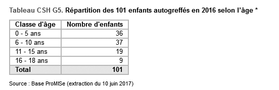 - 2 283 autogreffes réalisées sur 2 194 patients ; l’exhaustivité est de 72,5% par rapport aux chiffres d’activité communiqués par les centres et repris dans les tableaux CSH G1 et CSH G2.
