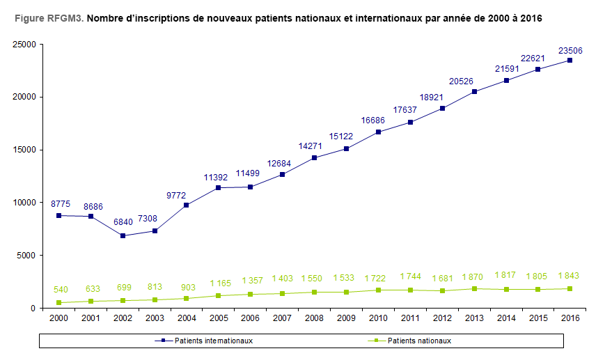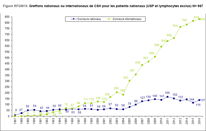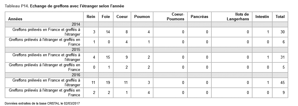 Tableau P14. Echange de greffons avec l'étranger selon l'année