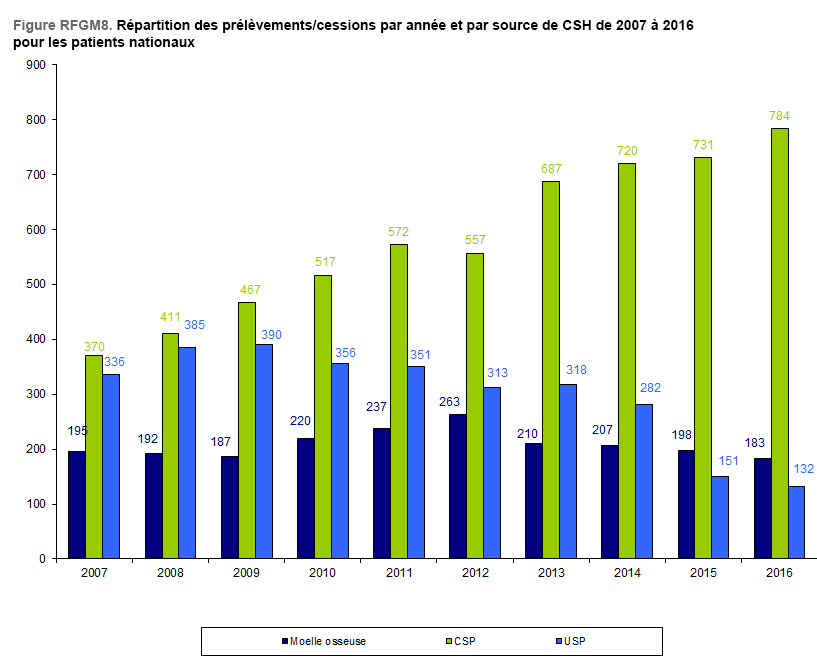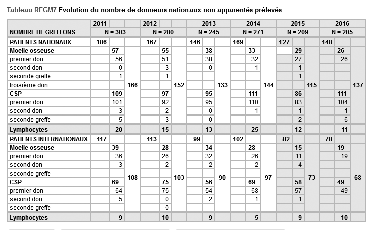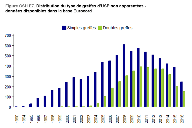 Tableau G7. Évolution du nombre de greffes d'organes effectuées de 2007 à 2016