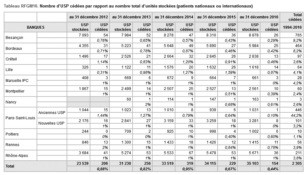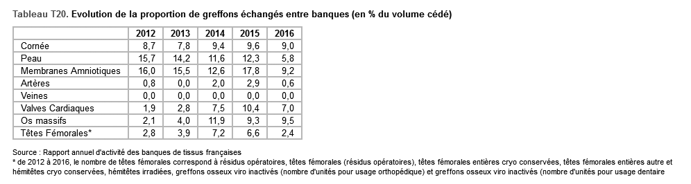 Tableau T20. Evolution de la proportion de greffons échangés entre banques (en % du volume cédé)