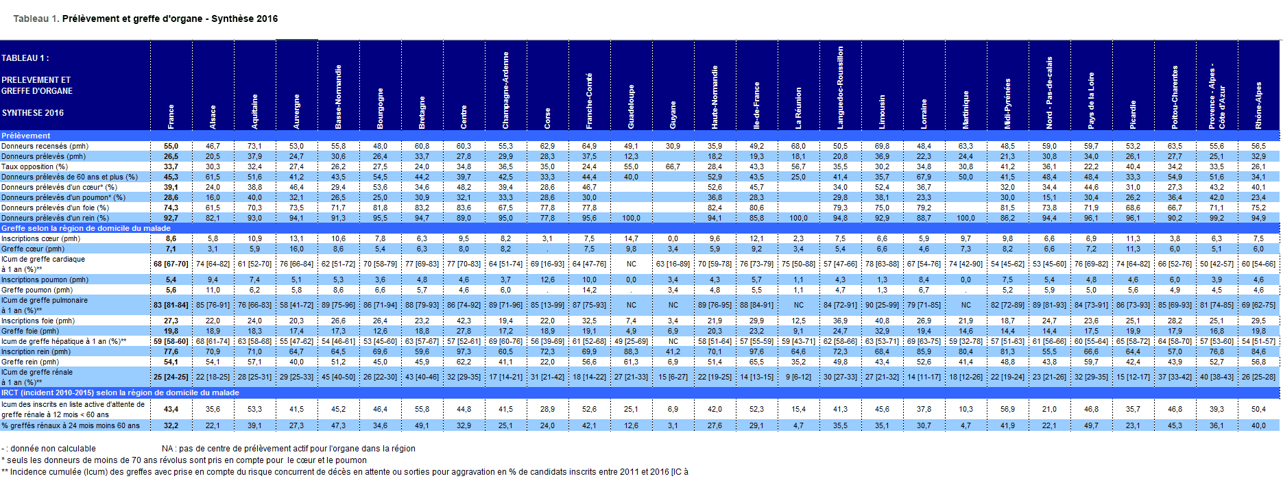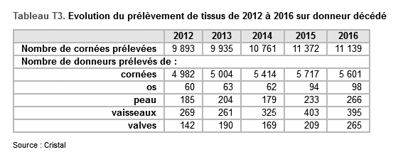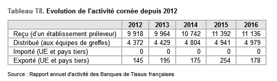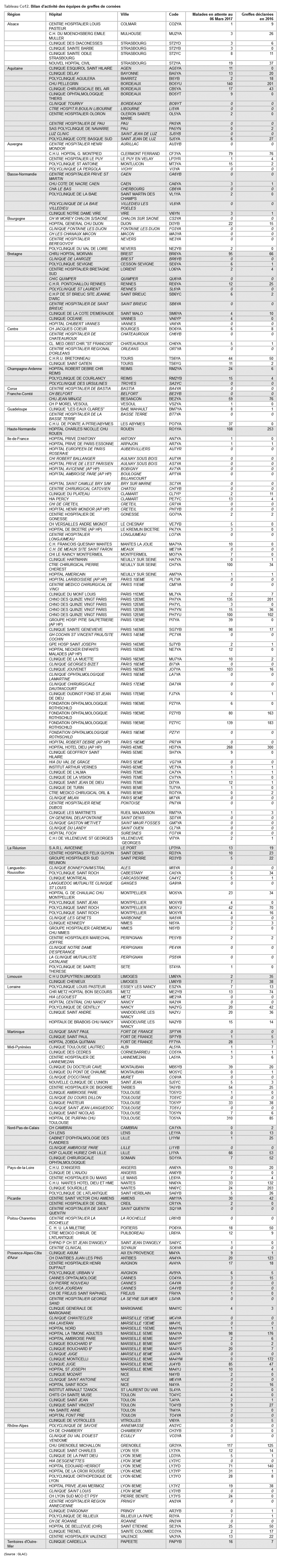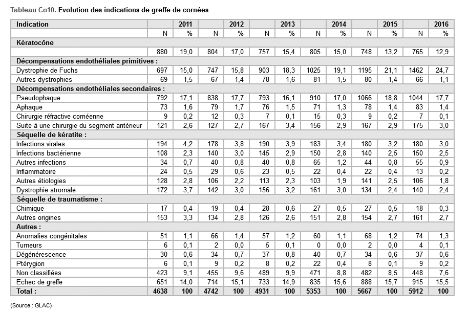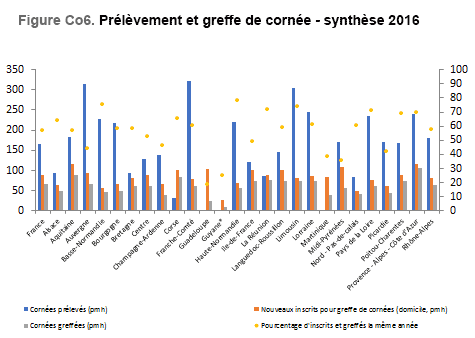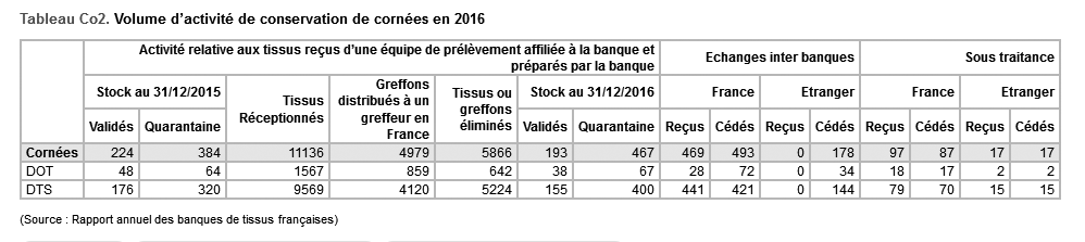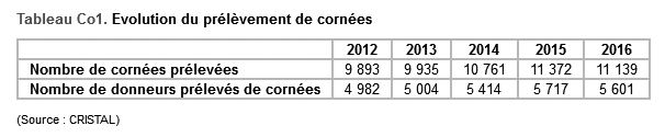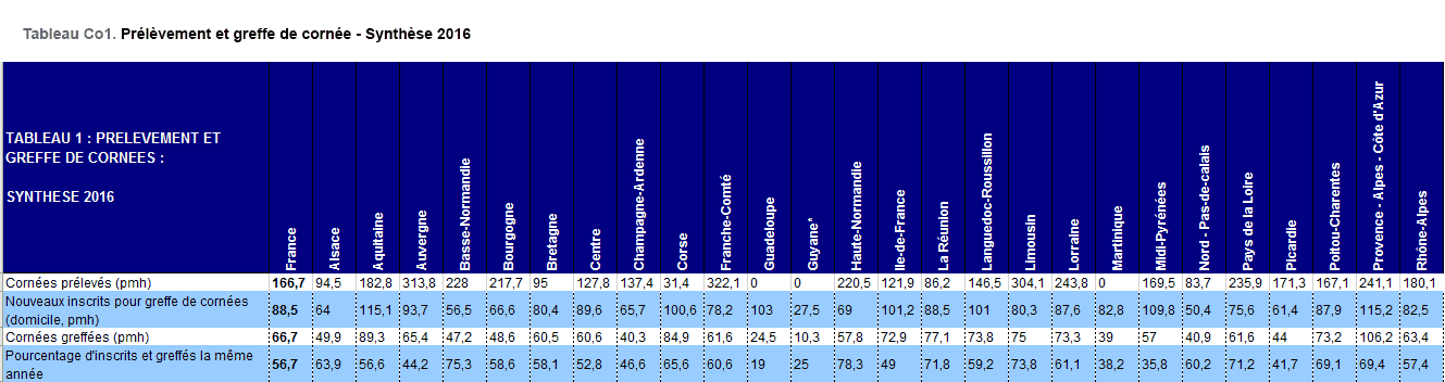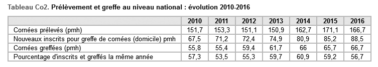 Tableau Co1. Prélèvement et greffe de cornée - Synthèse 2016