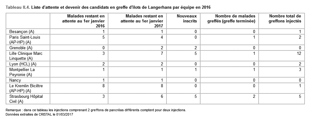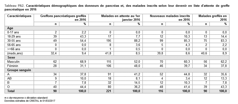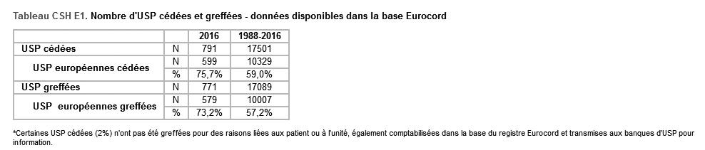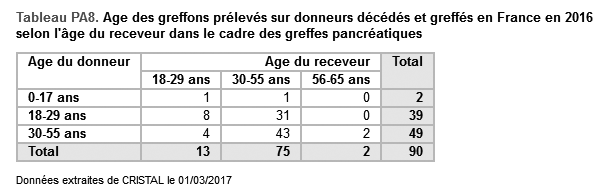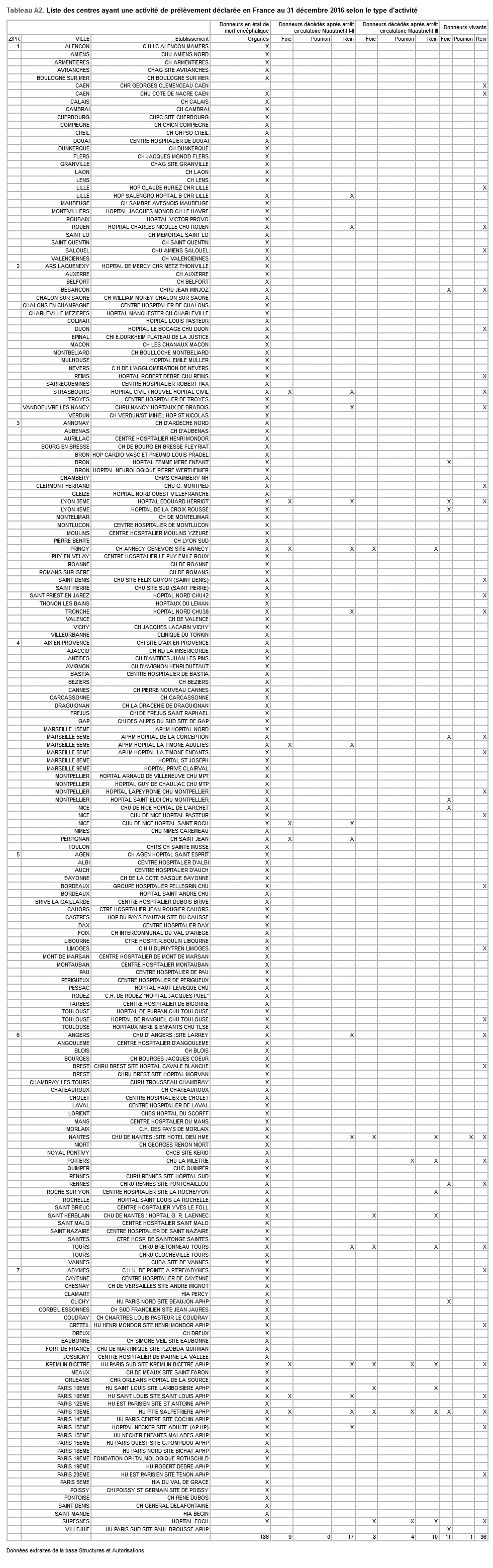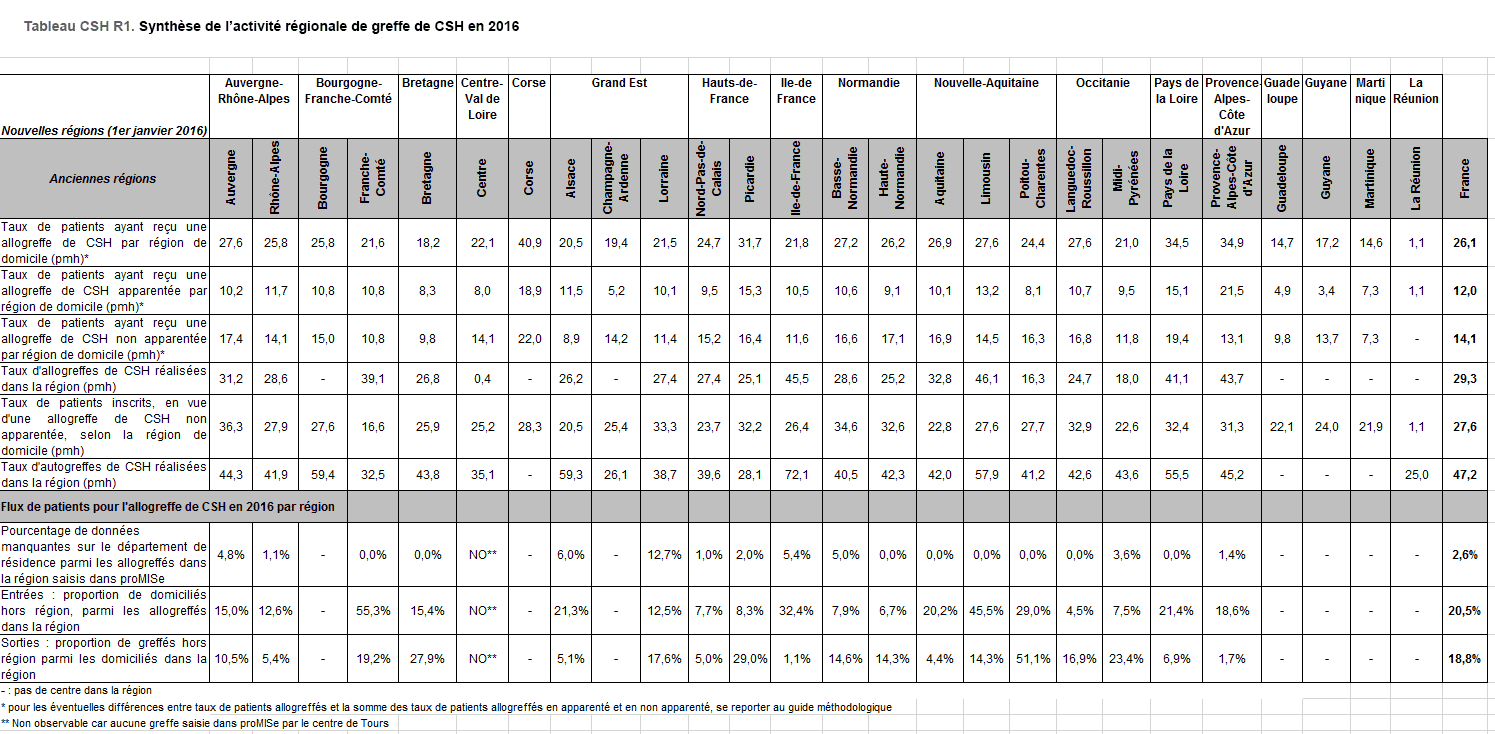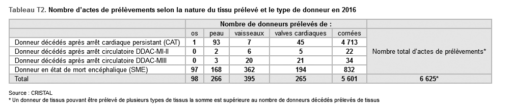 Tableau Co1. Prélèvement et greffe de cornée - Synthèse 2016