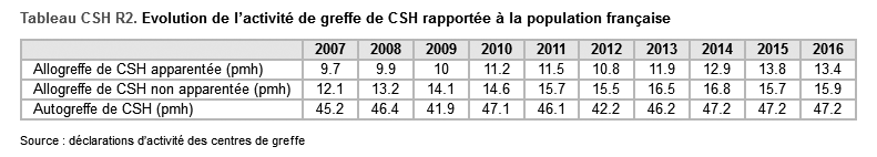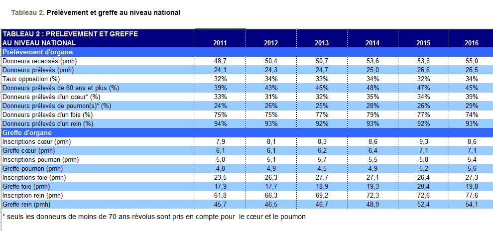 Tableau Co2. Prélèvement et greffe au niveau national : évolution 2010-2016
