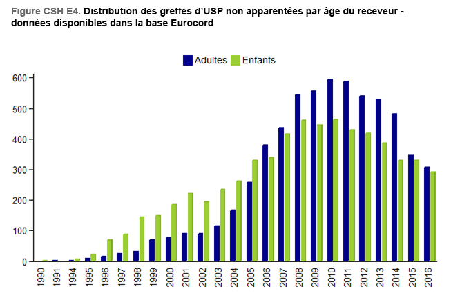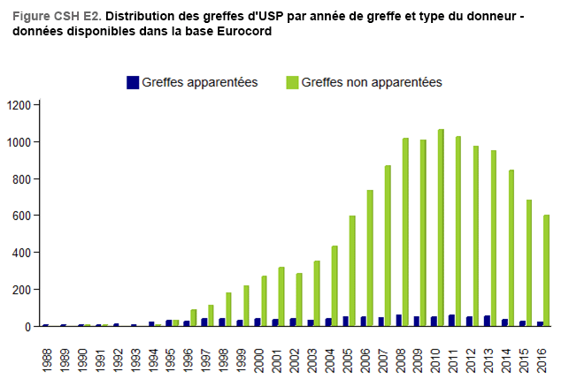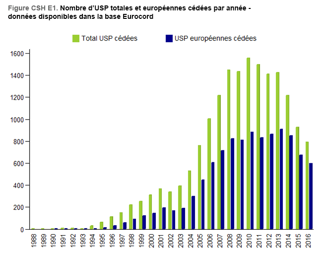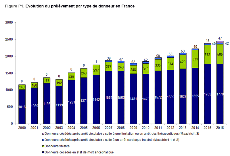 Figure P1. Evolution du prélèvement par type de donneur en France