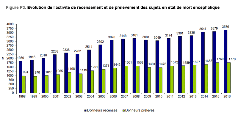 Figure P3. Evolution de l'activité de recensement et de prélèvement des sujets en état de mort encéphalique