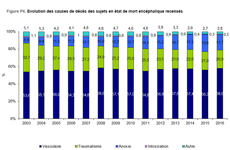 Figure P6. Evolution des causes de décès des sujets en état de mort encéphalique recensés