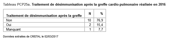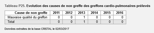 Tableau P25. Evolution des causes de non greffe des greffons cardio-pulmonaires prélevés