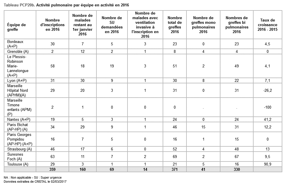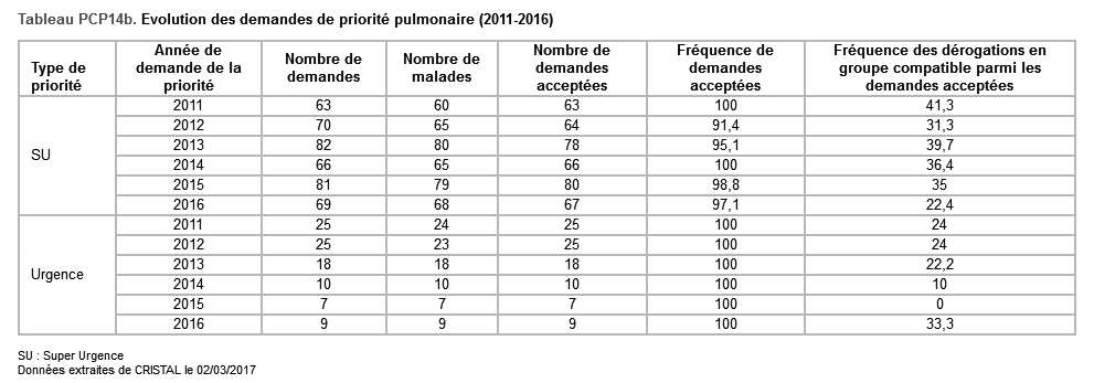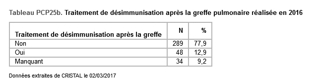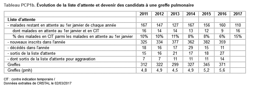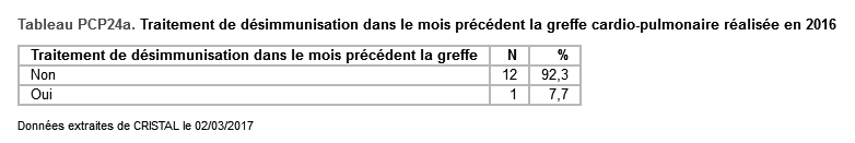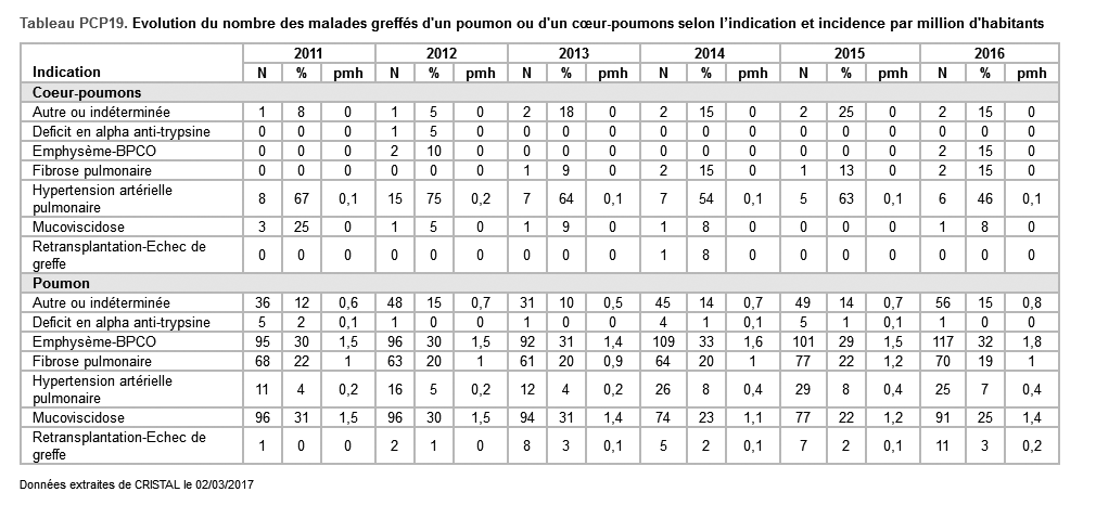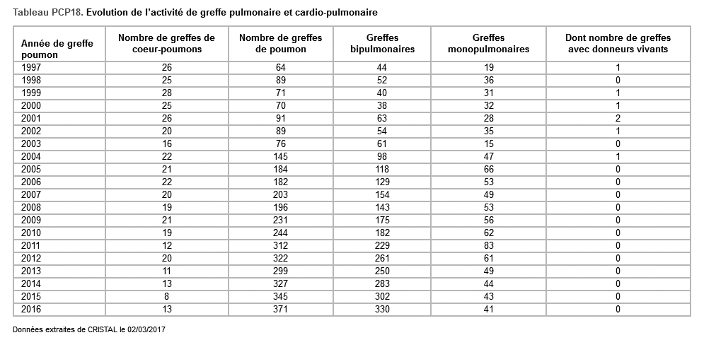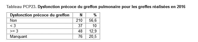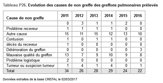 Tableau P26. Evolution des causes de non greffe des greffons pulmonaires prélevés