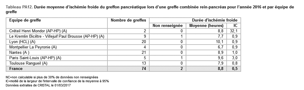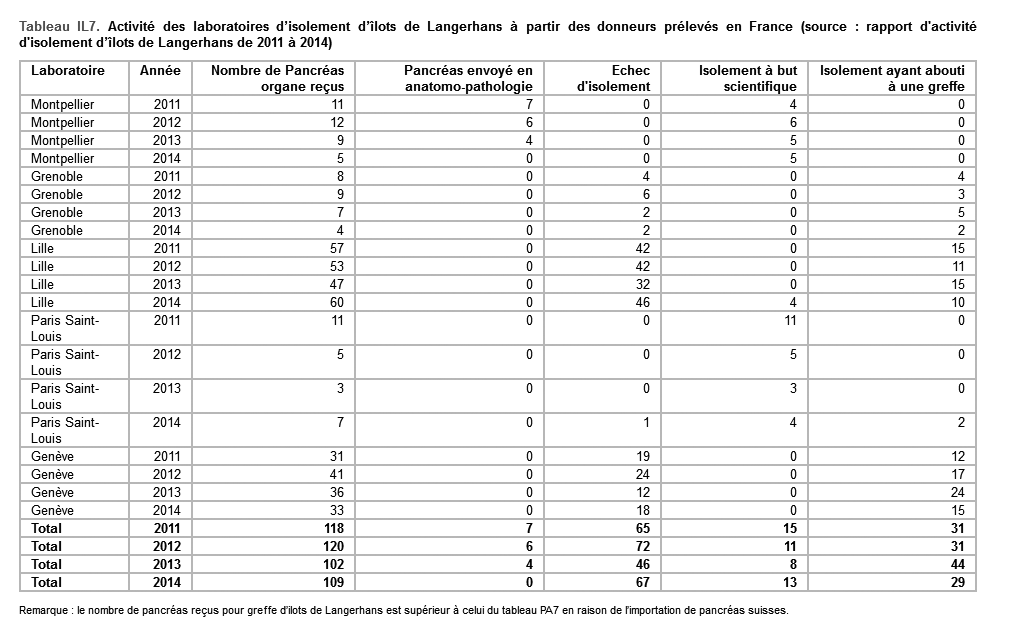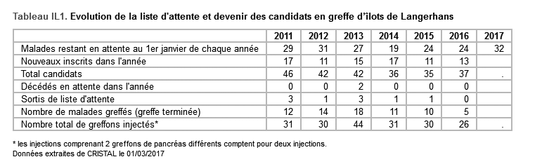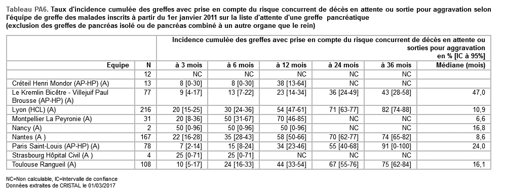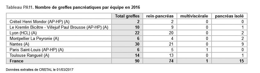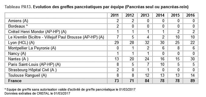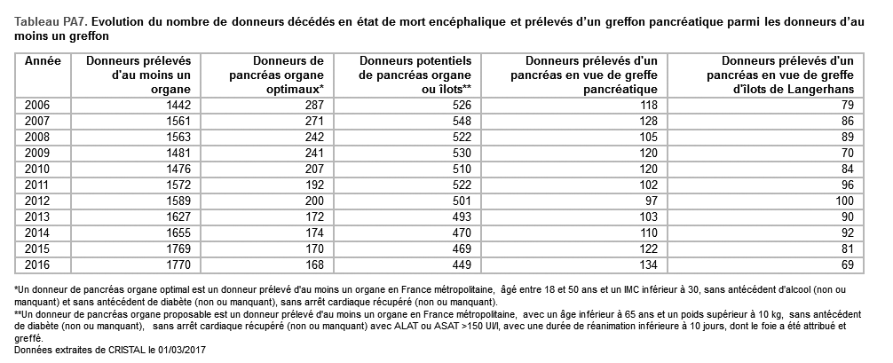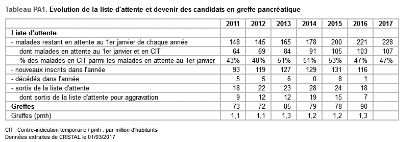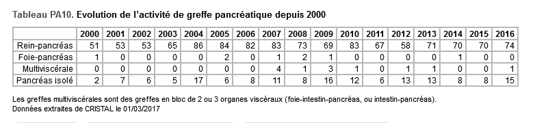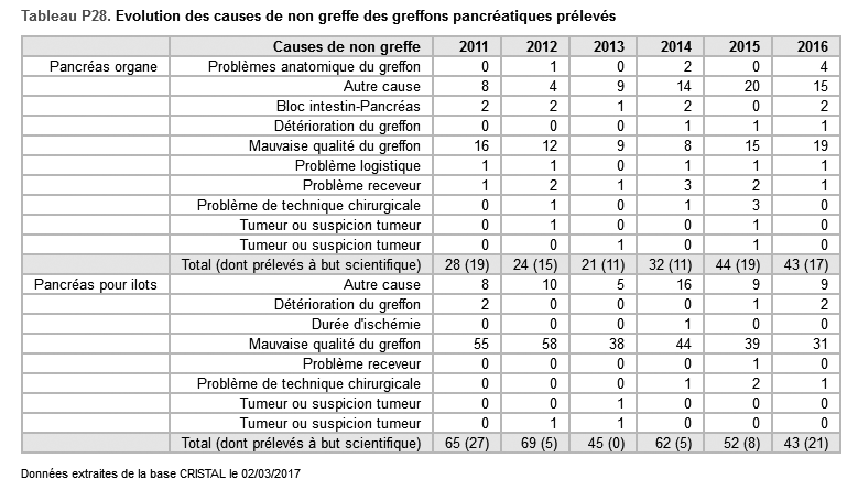 Tableau P28. Evolution des causes de non greffe des greffons pancréatiques prélevés