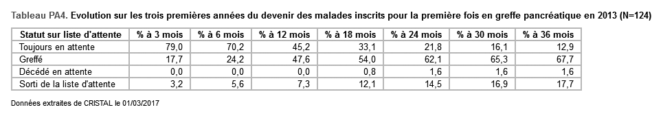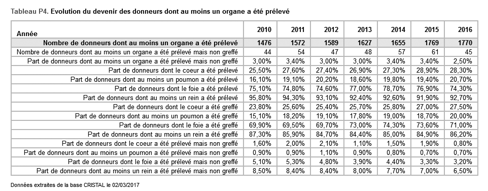 Tableau P4. Evolution du devenir des donneurs dont au moins un organe a été prélevé