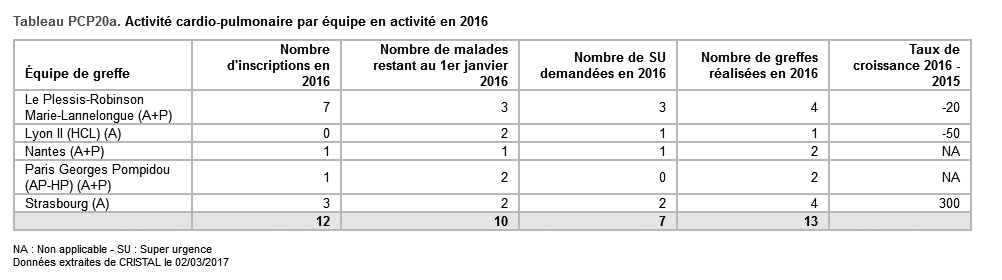 Tableau Co12. Bilan d'activité des équipes de greffes de cornées