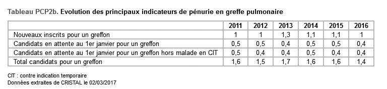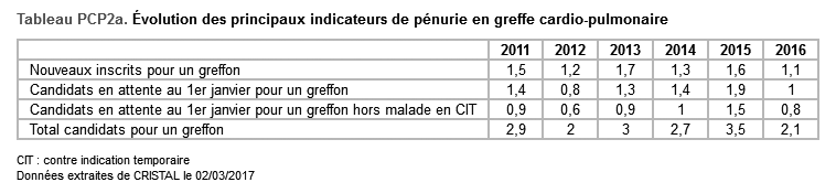 Tableau C2. Évolution des principaux indicateurs de pénurie en greffe cardiaque