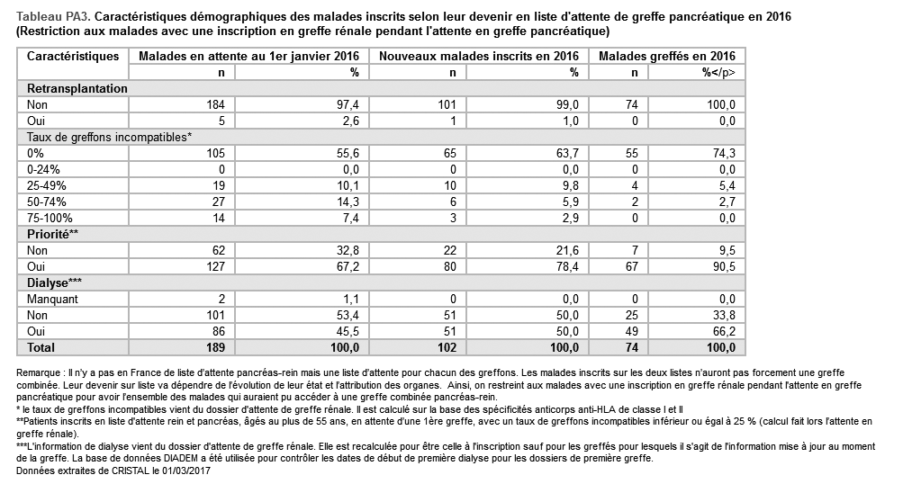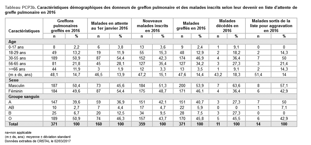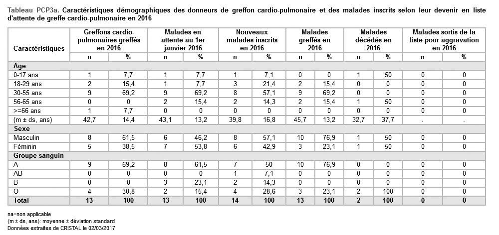 Tableau C3. Caractéristiques démographiques des donneurs de greffon cardiaque et des malades inscrits selon leur devenir en liste d'attente en 2016