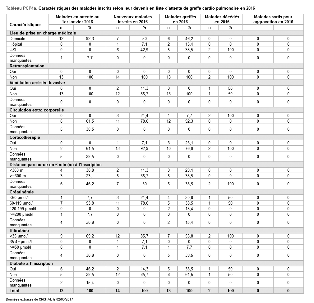 Tableau C4. Caractéristiques des malades inscrits selon leur devenir en liste d'attente de greffe de cœur en 2016