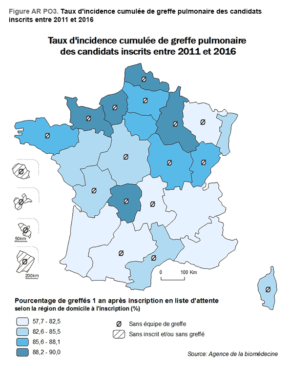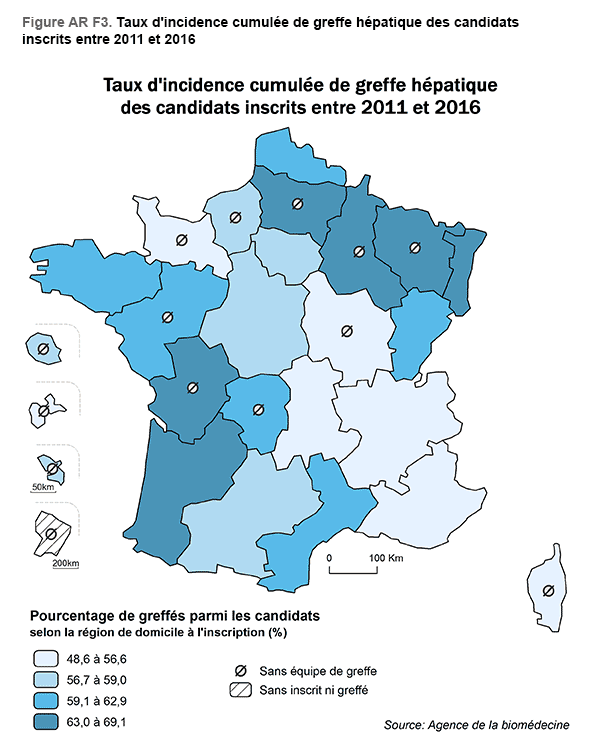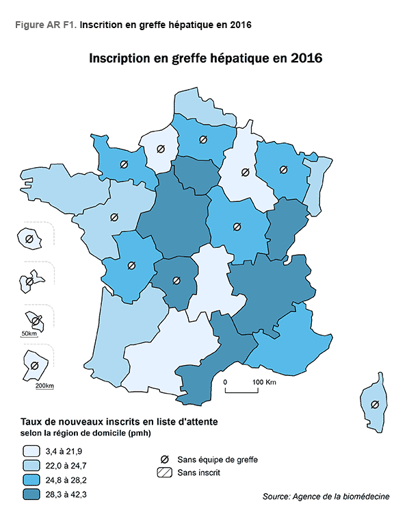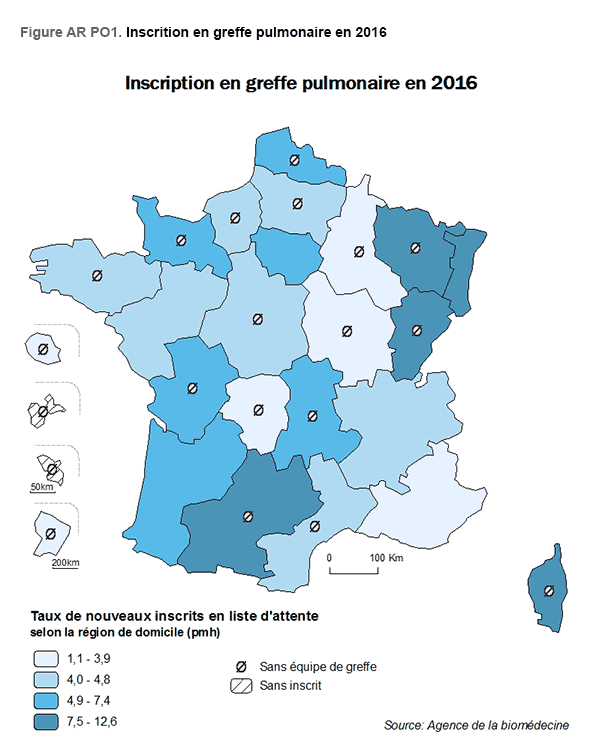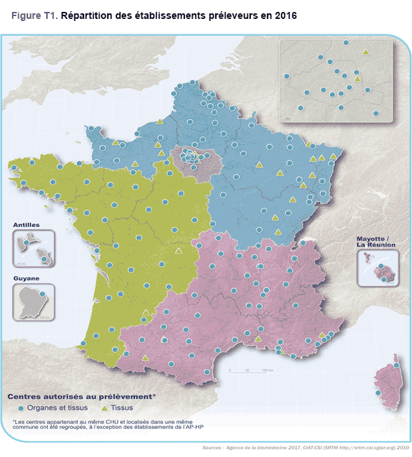 Figure G1. Répartition territoriale des équipes de greffe d’organes adultes