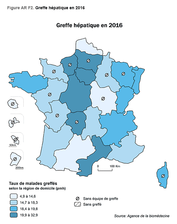 Figure G2. Répartition territoriale des équipes de greffe d’organes pédiatriques