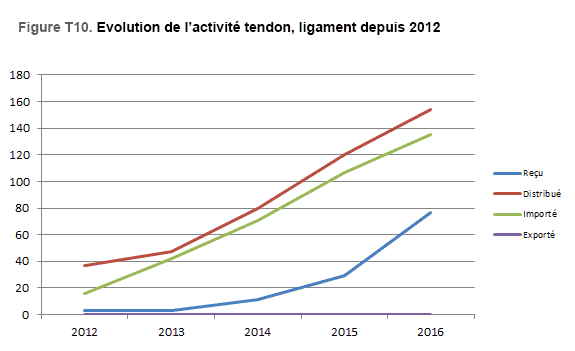 Figure T10. Evolution de l’activité tendon, ligament depuis 2012 (issue du tableau T15)