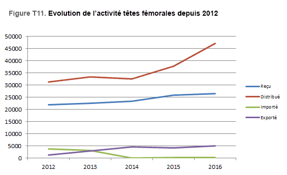 Figure T11. Evolution de l’activité têtes fémorales depuis 2012 (issue du tableau T16)