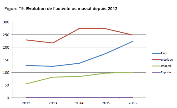 Figure T9. Evolution de l’activité os massif depuis 2012 (issue du tableau T14)