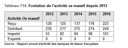 Tableau T14. Evolution de l'activité os massif depuis 2012