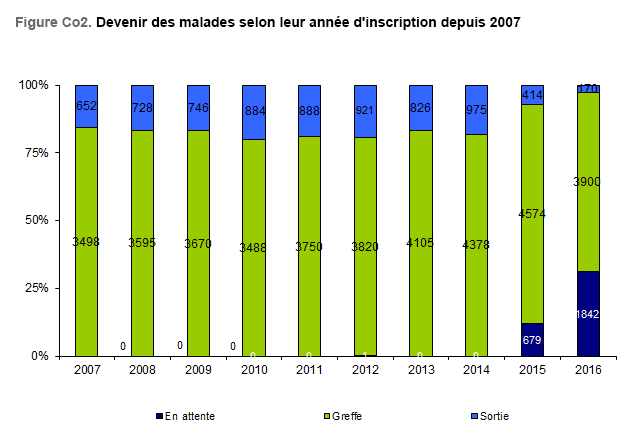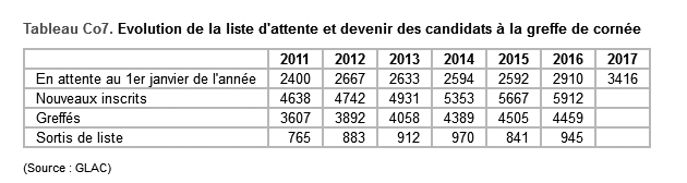 Tableau Co7. Evolution de la liste d'attente et devenir des candidats à la greffe de cornée