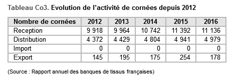 Tableau Co3. Evolution de l’activité de cornées depuis 2012