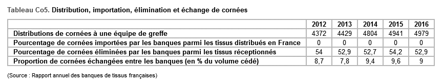 Tableau Co5. Distribution, importation, élimination et échange de cornées