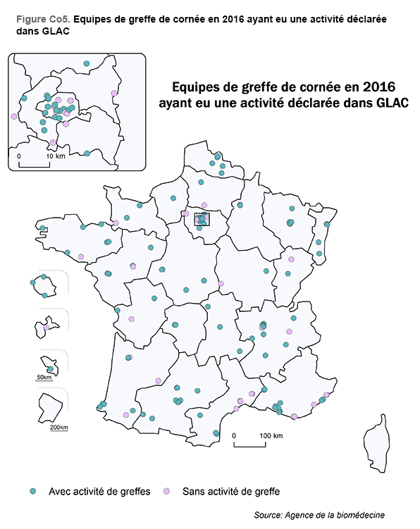 Figure Co5. Equipes de greffe de cornée en 2016 ayant eu une activité déclarée dans GLAC