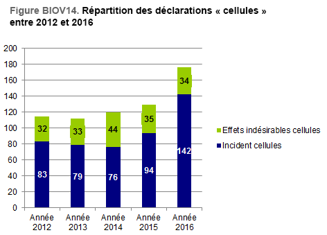 Figure BIOV14. Répartition des déclarations « cellules » entre 2012 et 2016