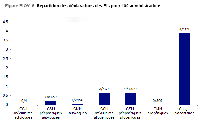Figure BIOV15. Répartition des déclarations des EIs pour 100 administrations