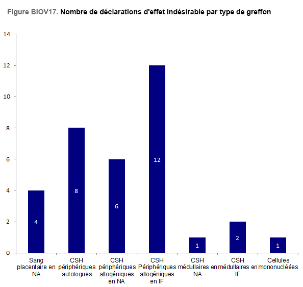 Figure BIOV17. Nombre de déclarations d'effet indésirable par type de greffon