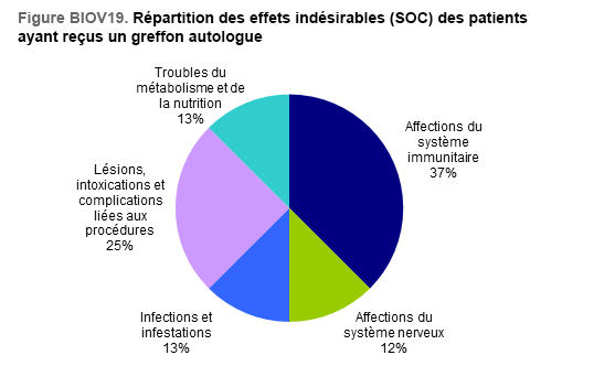 Figure BIOV19. Répartition des effets indésirables (SOC) des patients ayant reçus un greffon autologue