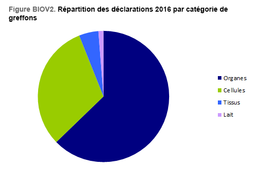 Figure BIOV2. Répartition des déclarations 2016 par catégorie de greffons