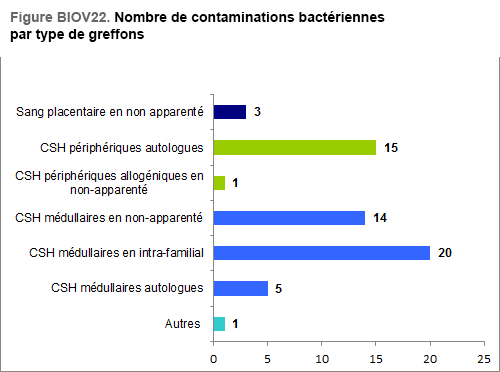 Figure BIOV22. Nombre de contaminations bactériennes par type de greffons