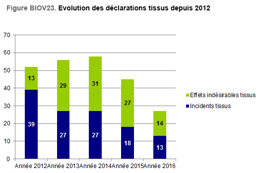 Figure BIOV23. Evolution des déclarations tissus depuis 2012