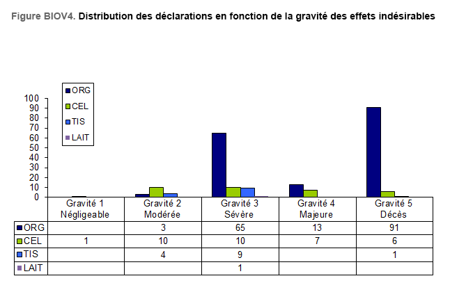 Figure BIOV4. Distribution des déclarations en fonction de la gravité des effets indésirables