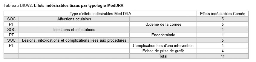 Tableau BIOV2. Effets indésirables tissus par typologie MedDRA