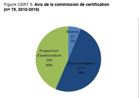 Figure CERT 5. Avis de la commission de certification (n= 79, 2010-2016)