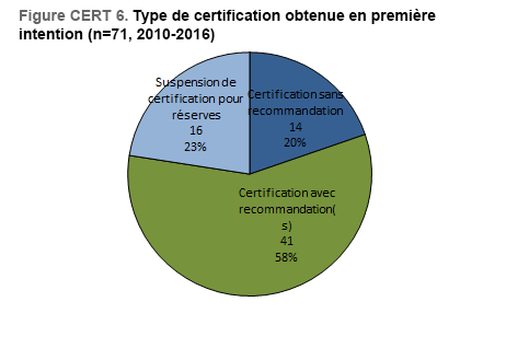 Figure CERT 6. Type de certification obtenue en première intention (n=71, 2010-2016)