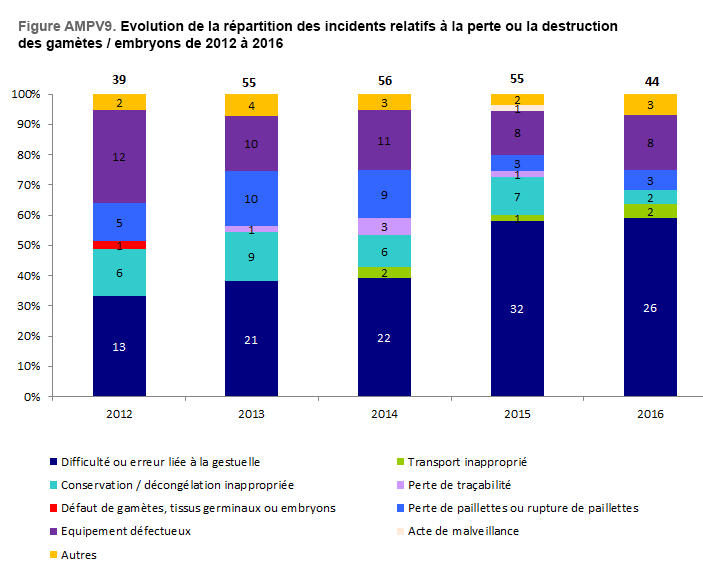 Parmi ces incidents, 54 soit environ 60% ont eu pour conséquence une perte avérée des gamètes, embryons ou tissus germinaux.