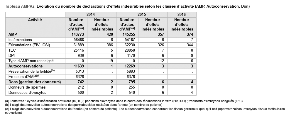 Pour plus d’informations, le rapport annuel d’AMP vigilance 2016 adressé au ministre en charge de la santé est téléchargeable à partir de juillet 2017 sur le site de l’Agence de la biomédecine (http://www.agence-biomedecine.fr/professionnels/amp-vigilance.html)