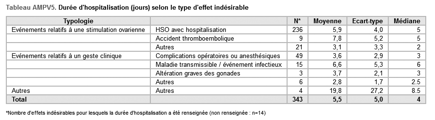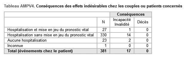 Ces incidents et leur impact sur les couples ou les patients sont présentés dans le tableau TAMPV8 ci-dessous.